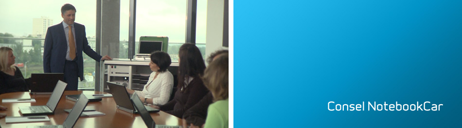 Der Consel NotebookCar ist ein mobiles IT-System, das speziell für den computergestützen, interaktiven Unterricht an Schulen, Universitäten und Bildungseinrichtungen entwickelt wurde. Durch die Verwendung modernster Software- und Hardwaretechnologie wird jeder Raum innerhalb weniger Minuten zu einer kabellosen IT-Landschaft: funktional, flexibel und sicher.